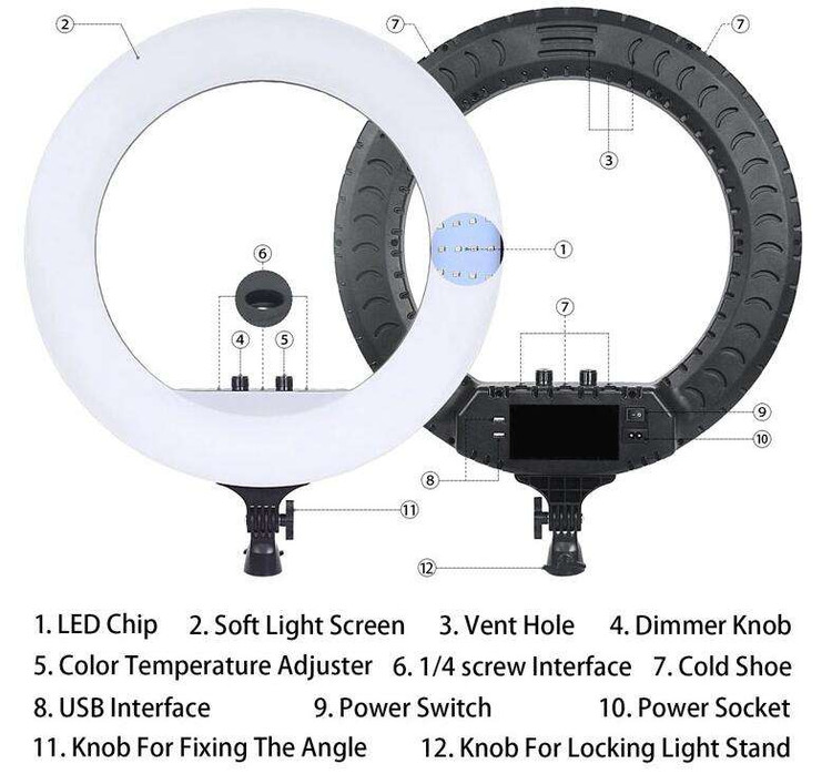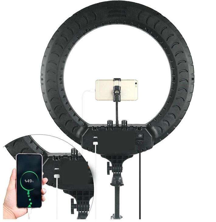 طراحی قابل حمل و سبک: این رینگ لایت با طراحی سبک و جمعوجور، به راحتی قابل حمل است و میتواند در استودیو یا در مکانهای مختلف همراه شما باشد. این ویژگی برای کسانی که بهطور مرتب در مکانهای مختلف کار میکنند، بسیار مفید است.