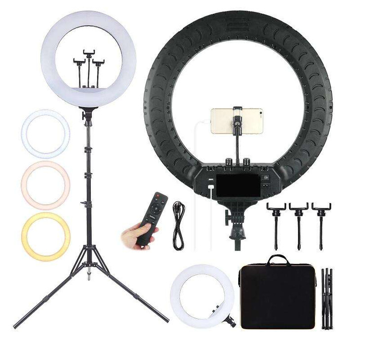 قطر 21 اینچی: با قطر بزرگ 21 اینچ، این رینگ لایت نور یکنواختی را در یک فضای وسیع فراهم میکند که برای عکاسی پرتره، ویدئوهای یوتیوب، لایو استریم و آرایشگری ایدهآل است.