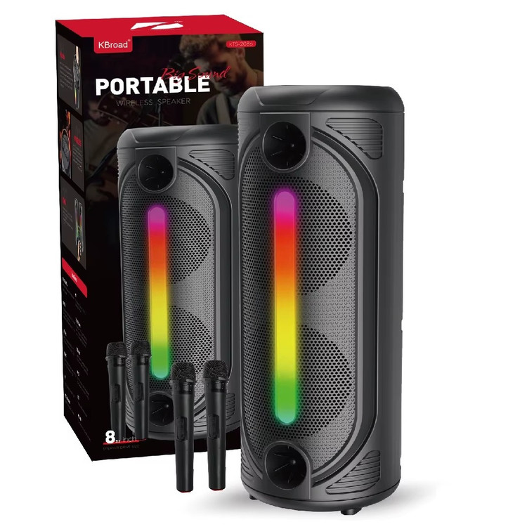 اسپیکر قابل حمل مدل KTS-2086 یک گزینه ایدهآل برای کسانی است که بهدنبال یک بلندگوی همهکاره با کیفیت صدای عالی، امکانات کامل و طراحی چشمگیر هستند. این اسپیکر با دو سابووفر 8 اینچی، صدایی حجیم، شفاف و قدرتمند تولید میکند که برای فضاهای باز، مهمانیها، برنامههای زنده و حتی استفاده روزمره بسیار مناسب است.