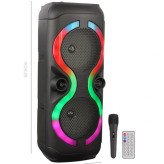 طراحی مدرن این اسپیکر با ووفر 8 اینچی و نورپردازی LED RGB چند رنگ جلوهای خاص به محیط میبخشد. شمایل باریک و دسته و چرخهای تعبیه شده در بدنه، جابهجایی آن را ساده کرده و باتری قدرتمند 4500 میلیآمپری امکان استفاده طولانیمدت بدون نیاز به برق را فراهم میکند.