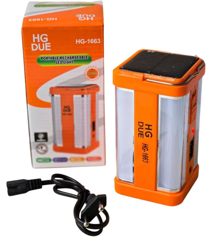 چراغ اضطراری خورشیدی و شارژی HG DUE مدل HG‑1663 – نور قابل تنظیم، مناسب کمپینگ و منازل | خرید عمده چراغ قابل شارژ