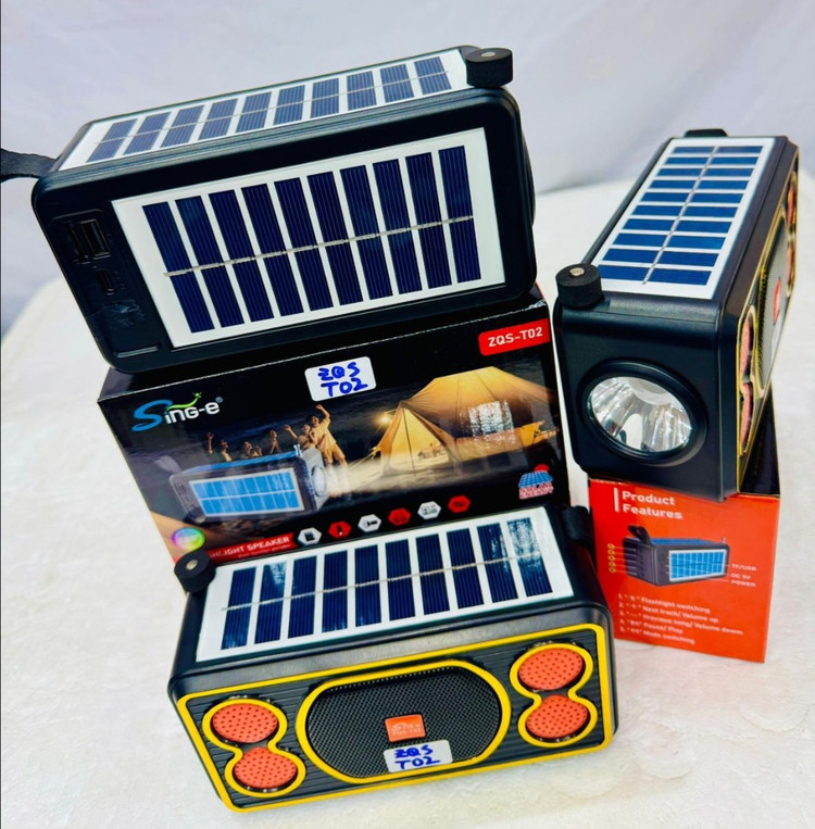 اسپیکر شارژی سولار چندکاره مدل Sing-e ZQS-T02 با چراغ قوه قوی و پنل خورشیدی