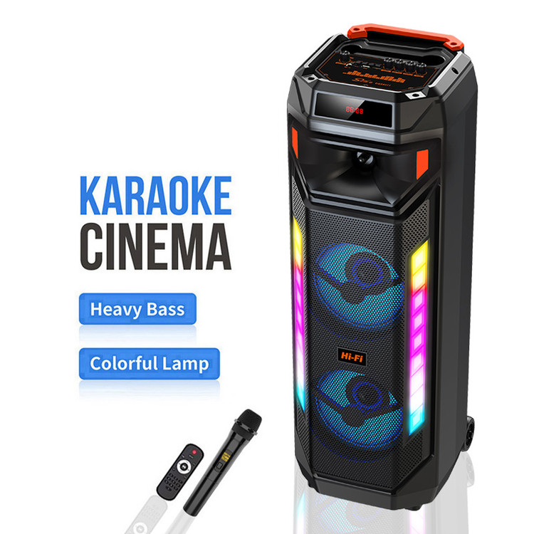 اسپیکر شارژی حرفهای Sing-e ZQS‑8271 مدل دو ووفر ۸ اینچ | قدرت ۲۰×۲ وات | نورپردازی LED رنگی، میکروفن بیسیم و کنترل از راه دور