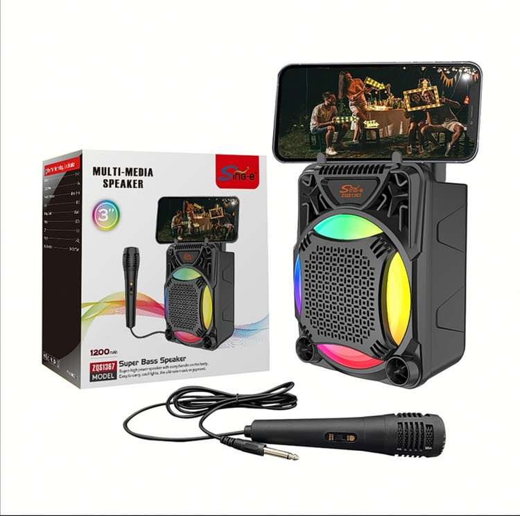 اسپیکر قابل حمل شارژی مدل Sing-e ZQS-1367 با میکروفون و جایگاه موبایل