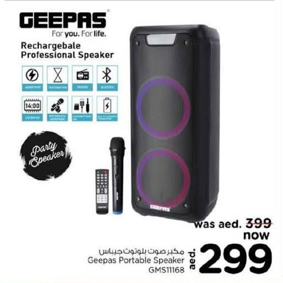 اسپیکر Geepas GMS11168 یکی از محصولات پرطرفدار برند Geepas است که به خاطر قابلیتها و کیفیت صدای بالای آن، مورد توجه بسیاری از کاربران قرار گرفته است. در ادامه به توضیح ویژگیهای این اسپیکر میپردازیم: