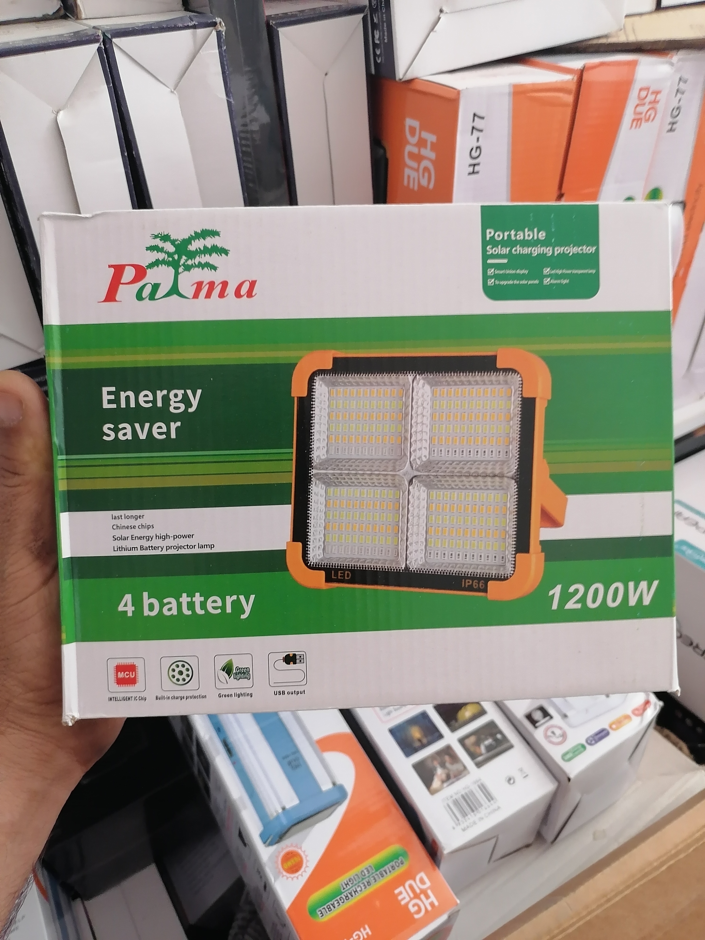 پروژکتور سولار پالما 1200 وات | چراغ شارژی ضدآب با 4 باتری( پخش عمده)